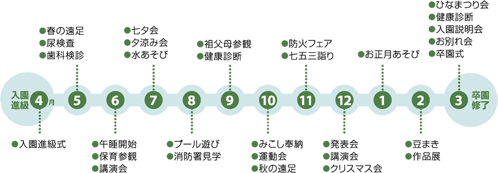 ※身体測定、お誕生日会、避難訓練、神社参拝は毎月実施しています。