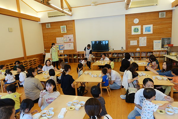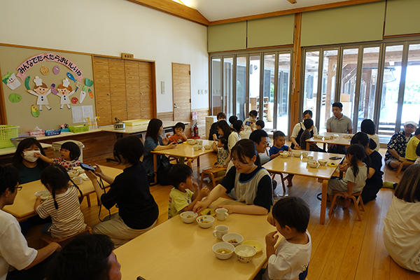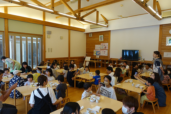 17日(火)に赤組さんの給食参観を実施しました。名阪食品さんの提供してくれる給食を食べる子どもたちの姿をお父さん、お母さんに見ていただくことができました。