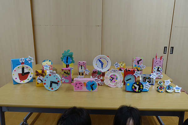 時の記念日に合わせてひとりひとりが思い思いに制作した時計を飾ってもらいました。