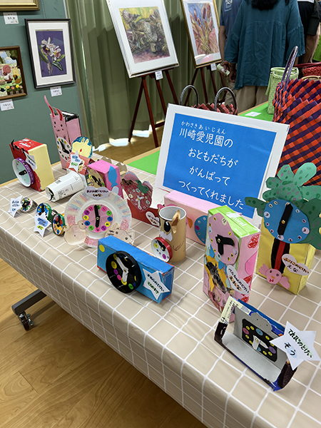 22日(日)に開催された町協ふれあい文化祭に青組さんの作品を展示してもらいました。